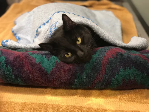 Our resident cat who prefers to stay behind the scenes and be the unseen hero of our hospital.  Ben helps recover animals after surgery by sharing their blankets.  Update:  Since the Almeda Fire, Ben has found a new home at Dr. Winters's house, and has become his wife's favorite.